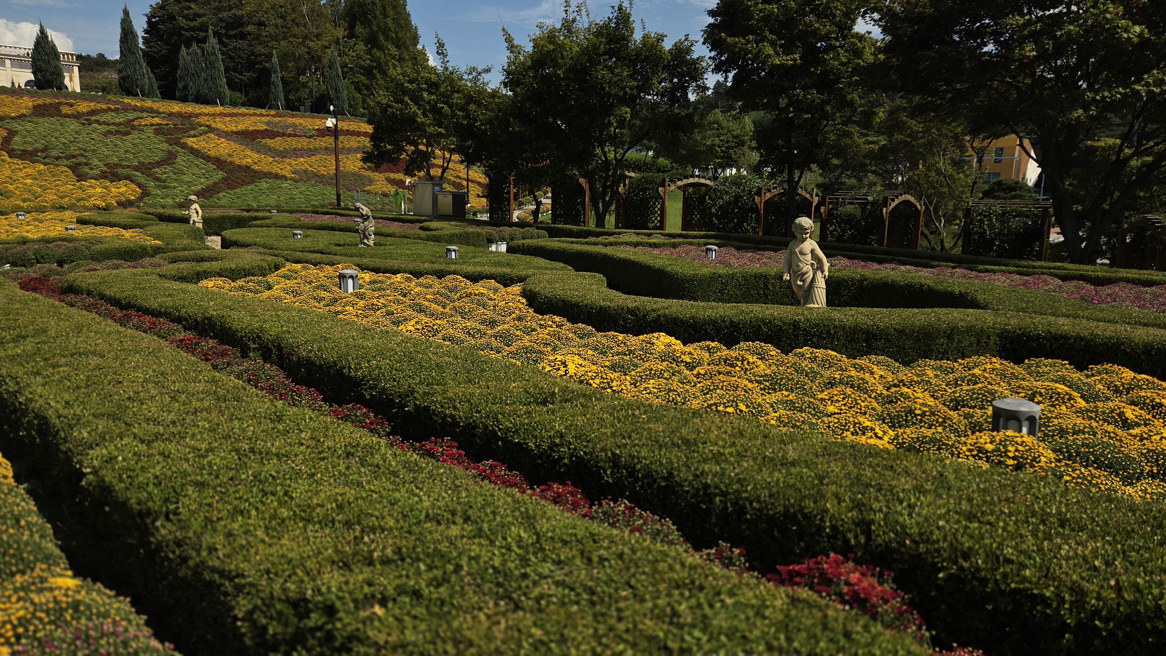 또한 임실군은 10월 1일부터 11월 9일까지 국화 개화와 전시 기간에 맞추어 치즈테마파크 입장료를 한시적으로 징수한다고 한다. 치즈테마파크는 매년 가을 천만 송이 국화가 만개하는 장관을 연출하고 유럽형 사계절 장미원까지 조성돼 한국 관광의 별에 선정된 바 있다. 국화 개화 철에는 전국 각지에서 수십만 명의 관광객이 찾아오며 전북을 대표하는 가을철 관광 명소로 각광받고 있다. 국화축제 개장 전에 미리 이곳을 찾았는데 축제 기간 중에는 입장료를 징수 예정이라 한다. 그러나 추석과 치즈축제 기간은 무료로 운영될 예정이라 하니 가을날의 좋은 추억 만들기 여행에 적절치 않을까 한다. 우리가 방문 시는 만개하지는 않았지만 아름다운 국화꽃망울이 싱그럽기만 하였다.